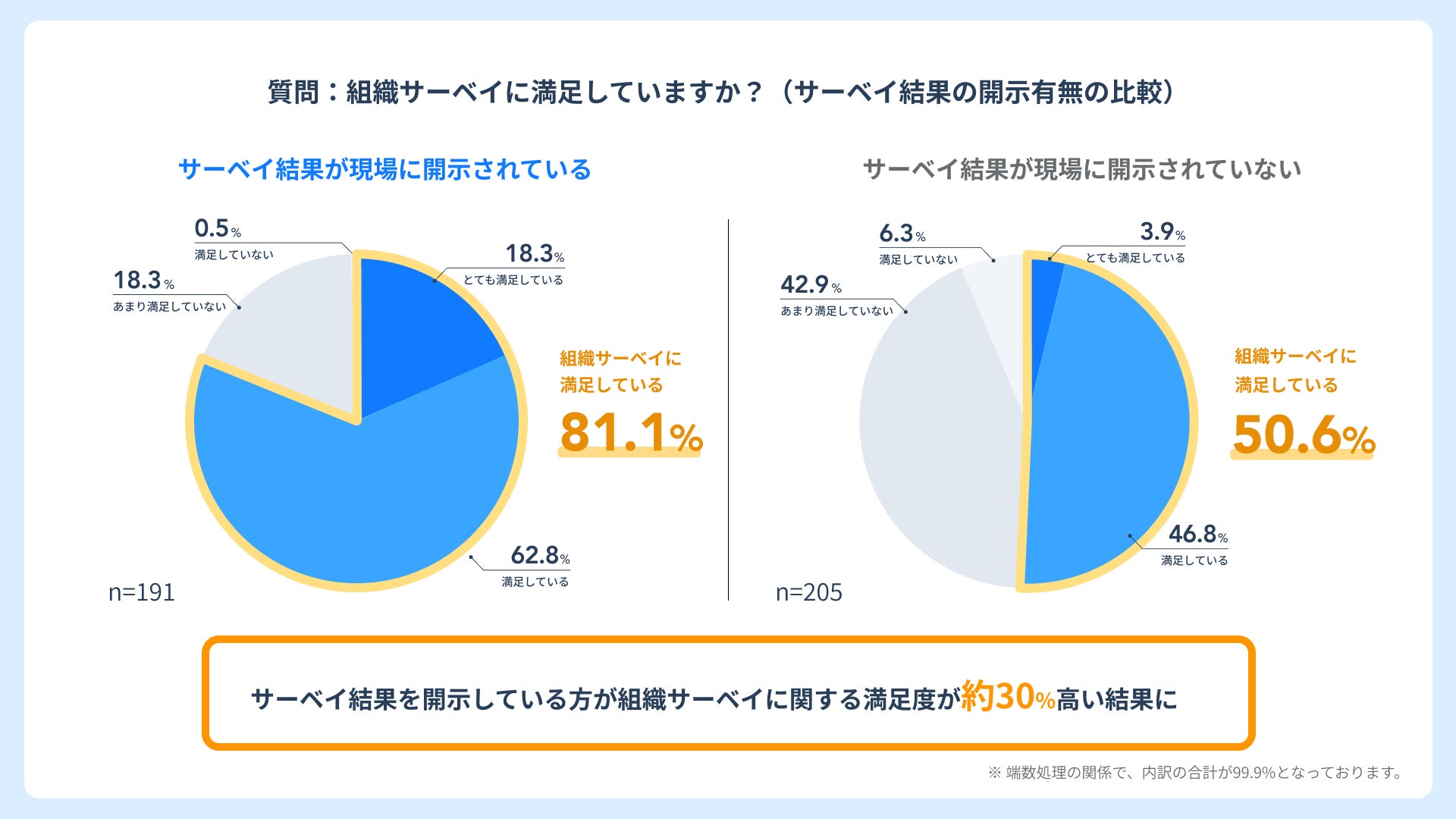- 合計で約89.7%が組織サーベイに肯定的な見解を示しています