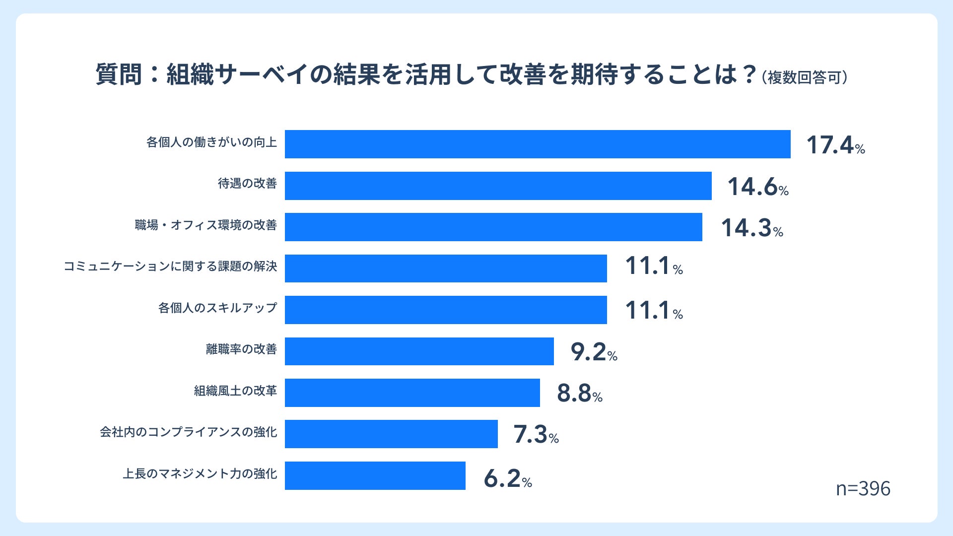 従業員が組織サーベイで最も期待する改善項目は以下の通りです。