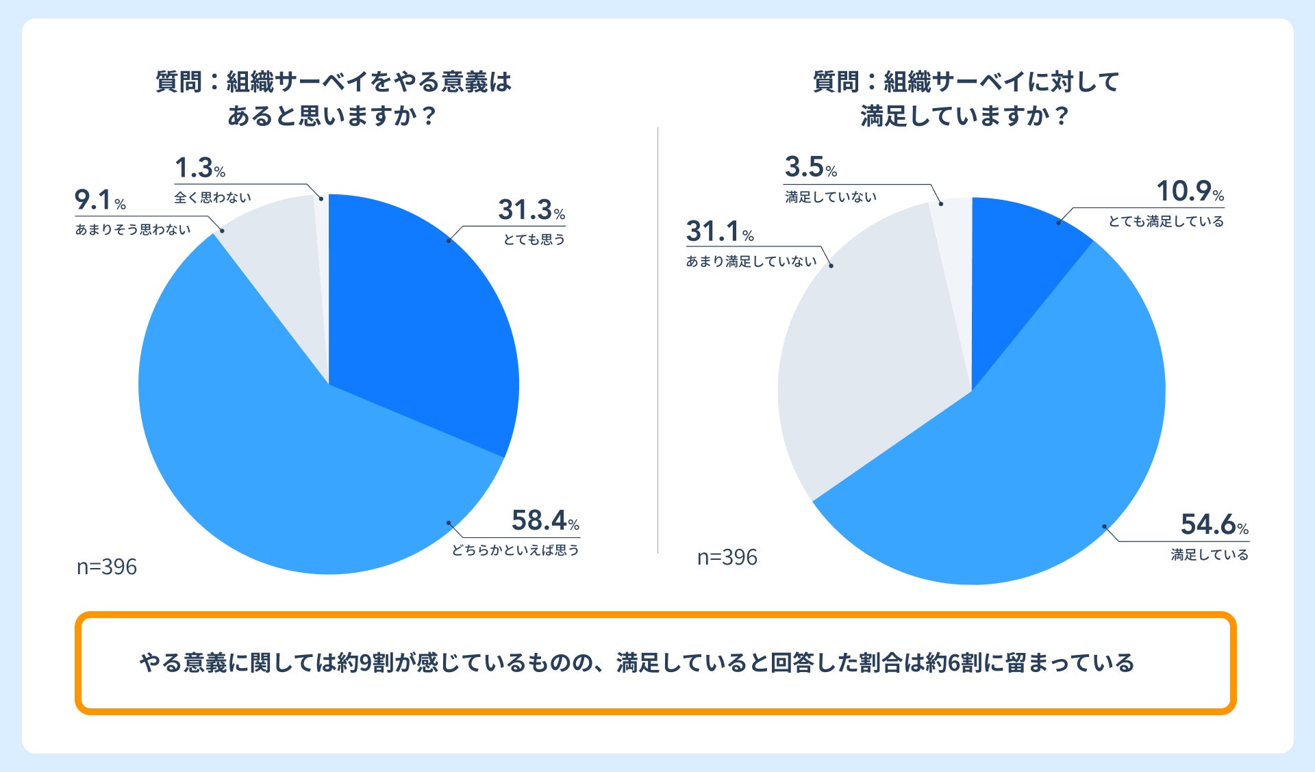 圧倒的多数の従業員が組織サーベイの意義を認めています。